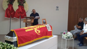Το αποχαιρετιστήριο μήνυμα των ΚΟΒ της Βορειοδυτικής Αθήνας και της ΚΟΒ Περισσού του ΚΚΕ στη συντρόφισσα Φρόσω, μετέφερε ο Νίκος Σταματόπουλος, μέλος της ΕΠ Αττικής και Γραμματέας της ΤΕ Βορειοδυτικής Αθήνας.
