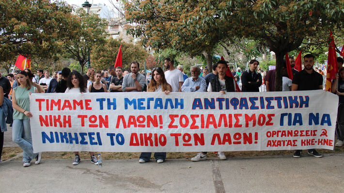 Τους αγώνες του παρελθόντος με την ανάγκη συσπείρωσης και οργάνωσης της αντίστασης απέναντι στη βαρβαρότητα που βιώνουν σήμερα οι εργαζόμενοι και ο λαός, αλλά και τους νέους μεγάλος κινδύνους που διαμορφώνει η όξυνση των ιμπεριαλιστικών ανταγωνισμών, συνέδεσε στην ομιλία της Γεωργία Κωνσταντινίδου, πρόεδρος του παραρτήματος Εύβοιας της ΠΕΑΕΑ -ΔΣΕ κάνοντας παράλληλα αναφορά στον αγώνα που δίνει η ΠΕΑΕΑ -ΔΣΕ για τη διεκδίκηση των γερμανικών αποζημιώσεων.