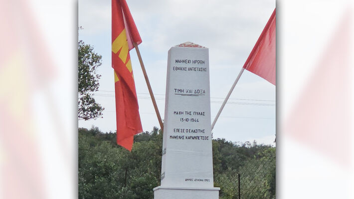Ο αστικός στρατός παράχωσε σε αυτό το σημείο, έξω από το επίσημο νεκροταφείο του χωριού, τους νεκρούς μαχητές του ΔΣΕ και για χρόνια κανείς δεν ήξερε τίποτα γι’ αυτό. Ώσπου τα γελάδια άρχισαν με τα πόδια τους να βγάζουν στην επιφάνεια τα οστά! Το ΚΚΕ ανέλαβε δράση. Και σήμερα στέκει ένα λαμπρό μνημείο με τα ονόματα όλων των νεκρών σε παράταξη.