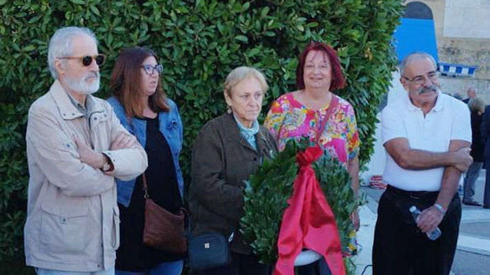 Σύντομο χαιρετισμό και κάλεσμα για συμμετοχή στην αυριανή απεργία απηύθυνε η πρόεδρος της ΠΕΑΕΑ – ΔΣΕ Τούλα Μητσέα, ενώ στεφάνι κατέθεσαν τα μέλη του προεδρείου της Ένωσης Γιάννης Ζαγγανάς και Βούλα Σταμέλου.
